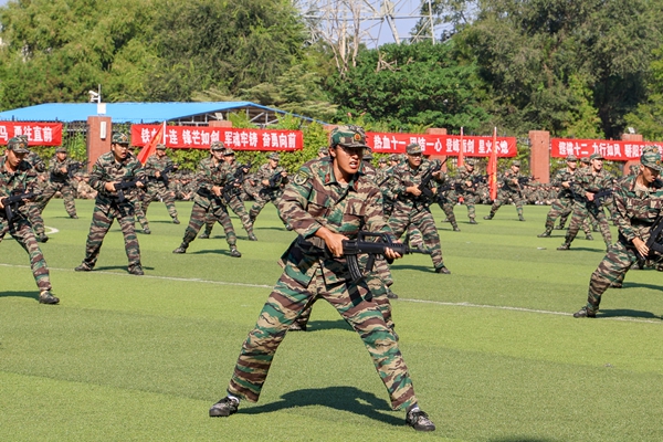 检阅式后,各军训连队进行了精彩的警棍术、应急棍术、擒敌拳、刺杀操、匕首操等训练科目成果汇报。同学们动作整齐划一、行云流水,声音嘹亮,气宇轩昂,充分展现了矿大学子良好的精神面貌和本次军训的丰硕成果,现场响起热烈的掌声。