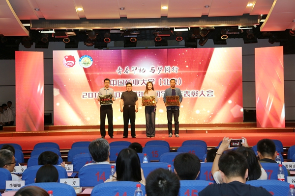 朱书全为2016年度“我最喜爱的青年教师”和“我最喜爱的青年教师”提名奖获得者颁奖。张志坤为获得2015-2016学年度“红旗团委”称号的资源学院团委、机电学院团委和化环学院团委颁奖。其他与会领导分别为优秀社团、优秀志愿者、十佳团员、优秀学生团干部、优秀团员和红旗团支部颁奖。
