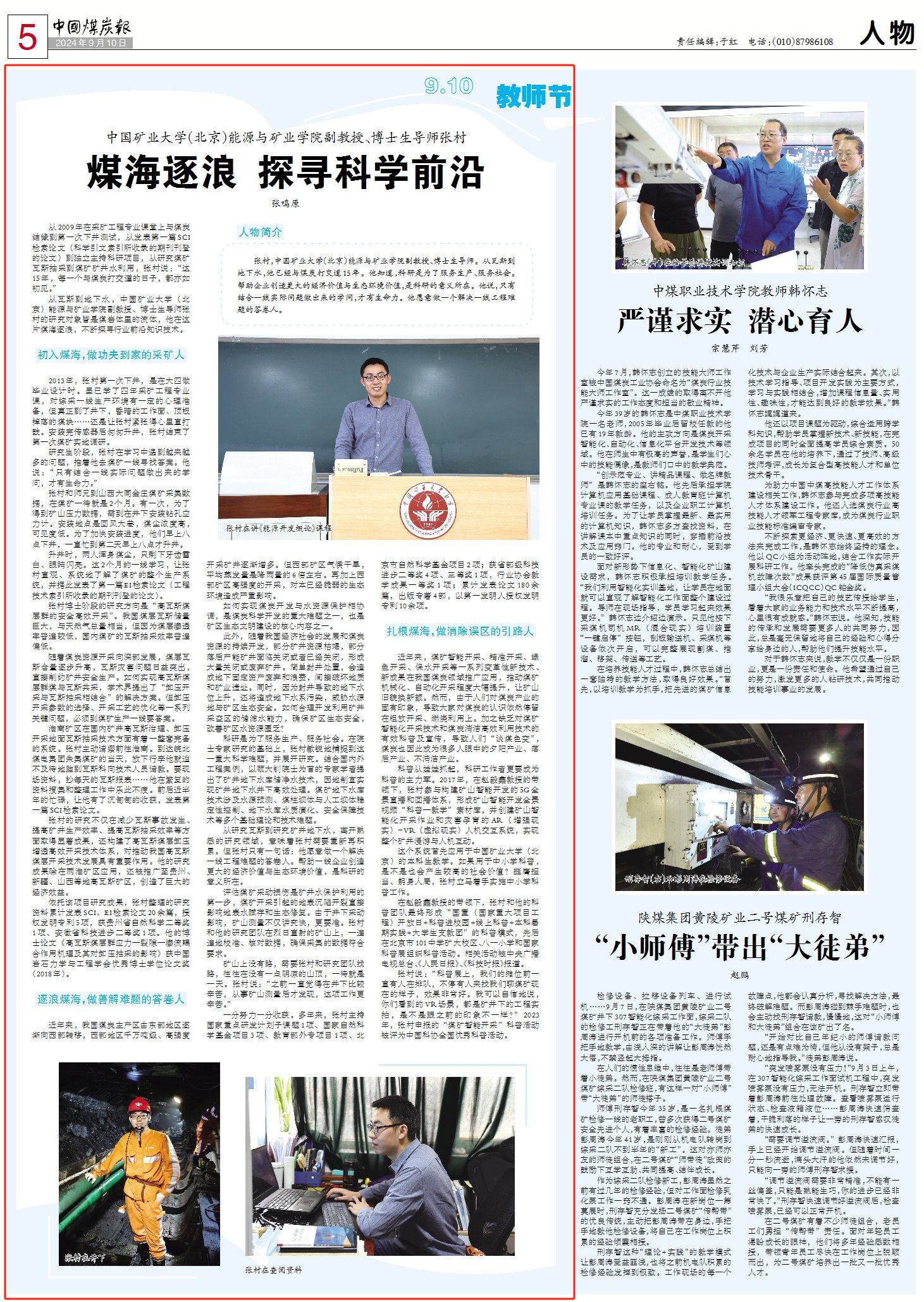 从2009年在采矿工程专业课堂上与煤炭结缘到第一次下井测试,从发表第一篇SCI检索论文(科学引文索引所收录的期刊刊登的论文)到独立主持科研项目,从研究煤矿瓦斯抽采到煤矿矿井水利用,张村说:“这15年,每一个与煤炭打交道的日子,都亦如初见。”