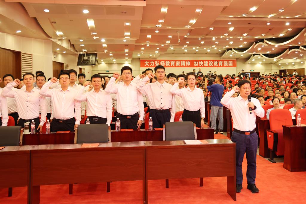 新入职教职工的加入,不仅为学校的教师队伍增添了蓬勃的朝气,更是对“为党育人,为国育才”崇高使命的坚定传承和辉煌续写。由汪文生领誓,全体新入职教工面向党旗、国旗庄严宣誓。