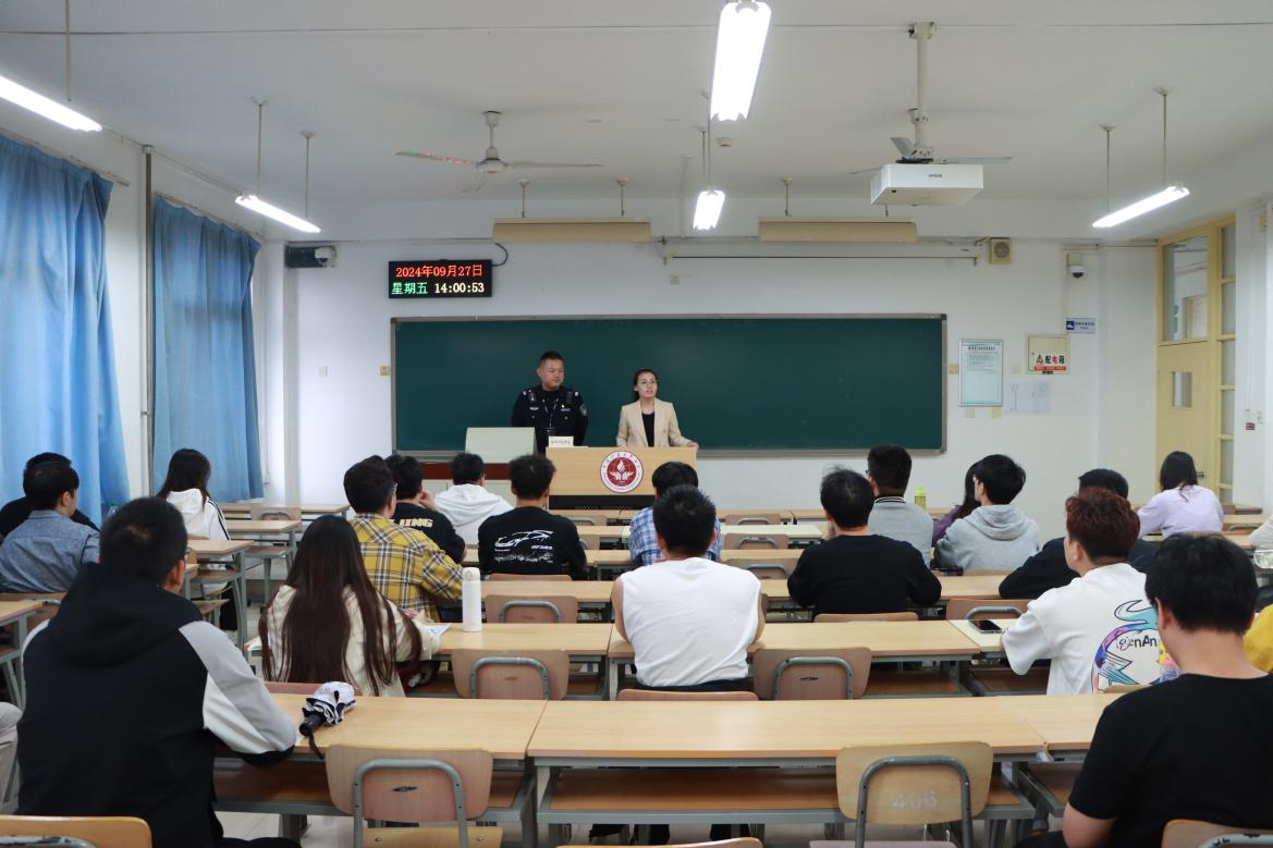 应急管理与安全工程学院组织开展学生年级大会,副处级专职组织员张庆国就消防安全、防诈骗、大学学习、法制教育四个方面进行了详细阐述。