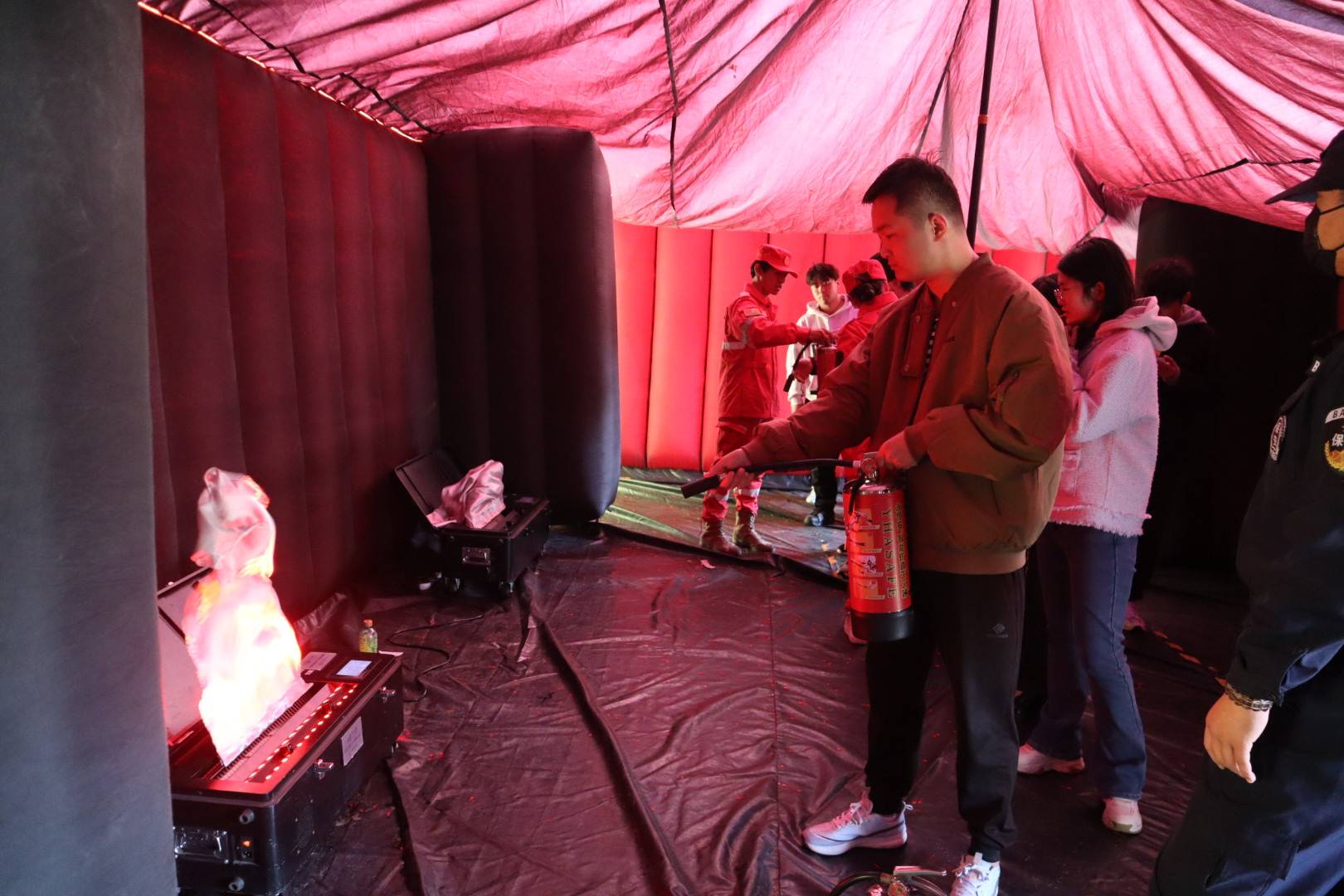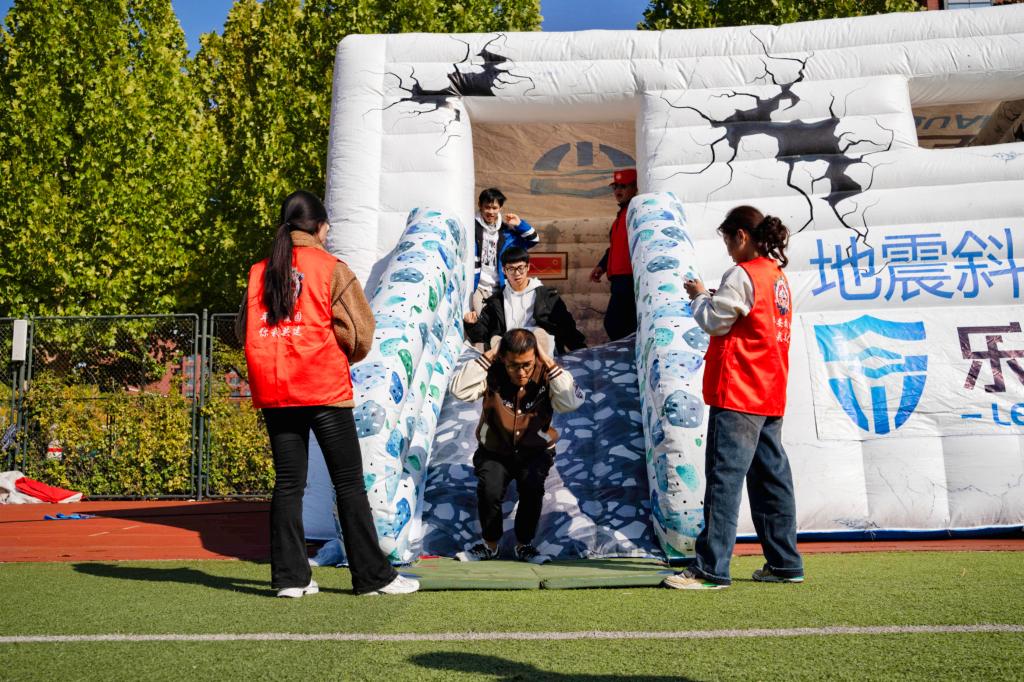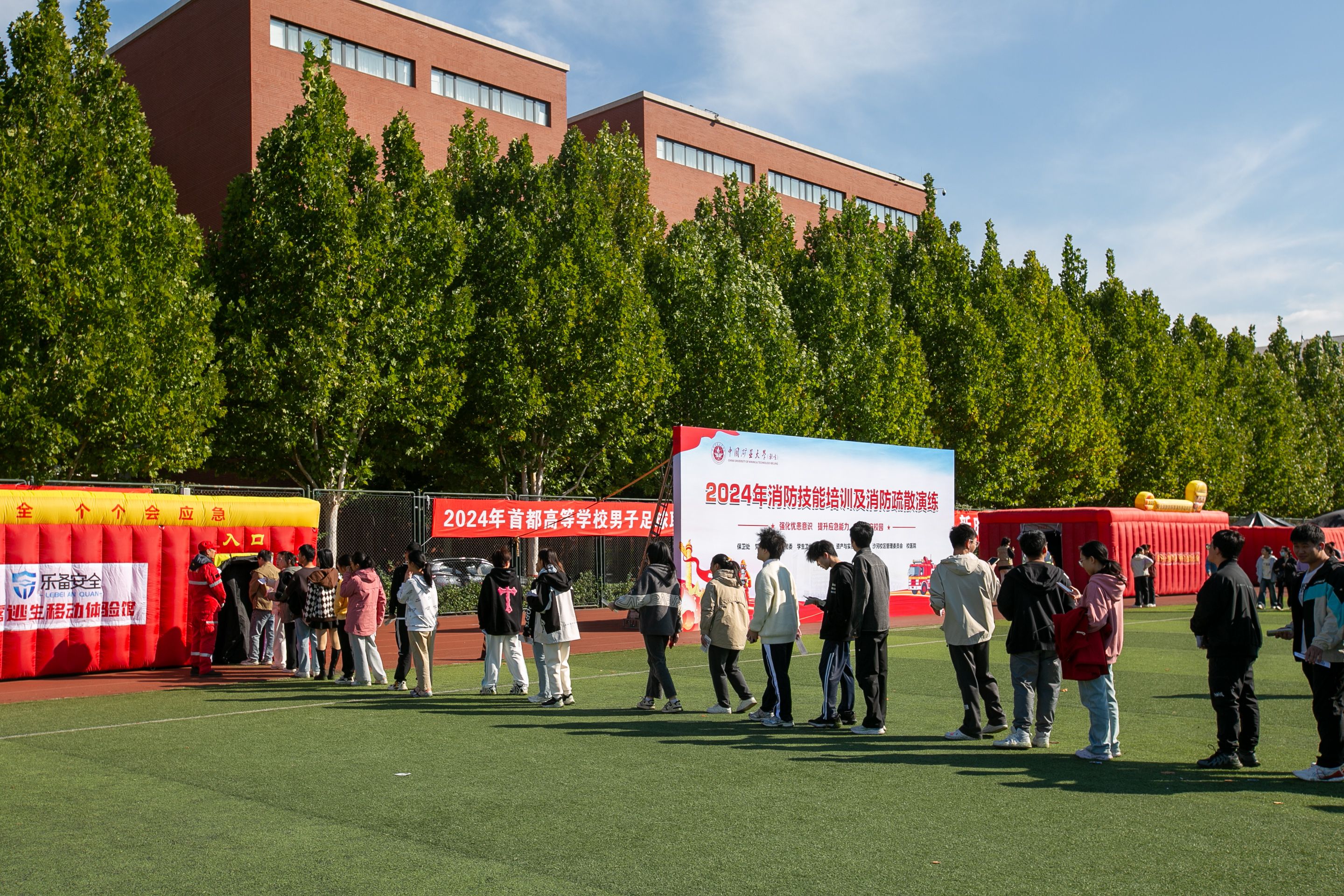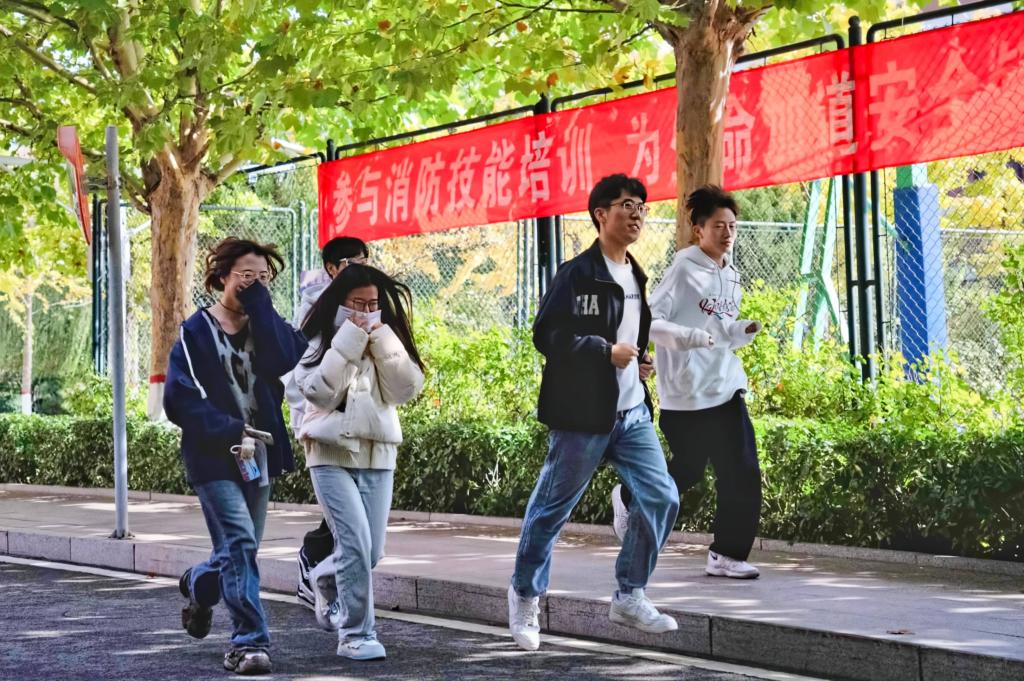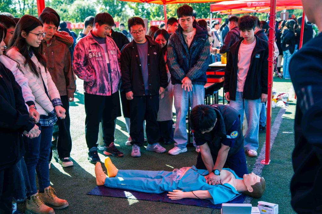 在沙河校区运动场,2024级本科、硕士研究生和驻沙河校区餐饮中心、物业中心教职员工等近4800人分时段、分批次参加了消防逃生救援技能培训。培训项目包括电子模拟灭火器灭火、烟雾帐篷逃生、心肺复苏、海姆立克救援法、模拟疏散防踩踏帐篷、绳结逃生方法、地震斜楼体验、模拟触电体验和电动自行车安全等九个内容。