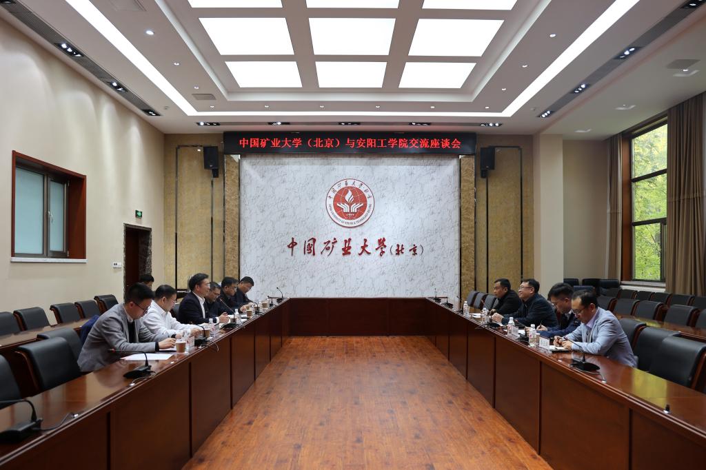沈记全对学校的热情接待表示感谢,并简要介绍了安阳工学院的历史沿革、办学现状、发展成果和未来方向。他表示,中国矿业大学(北京)在人才培养、学科建设、科技创新等方面有着雄厚的实力,长期以来给予安阳工学院多方面的支持与帮助。希望双方能够在师资队伍建设、专业建设、人才培养等方面开展更深入的合作,更好地服务国家重大需求和区域经济社会发展。