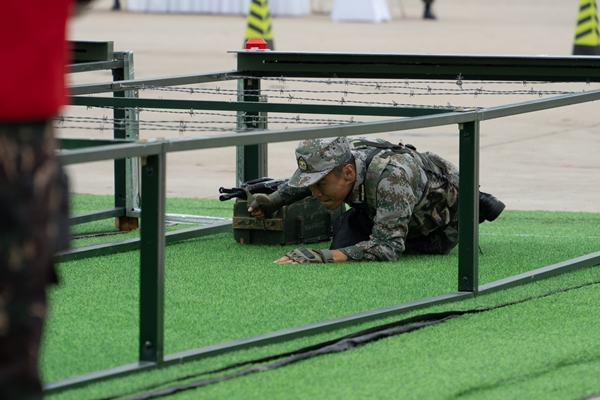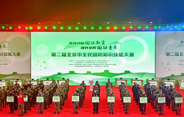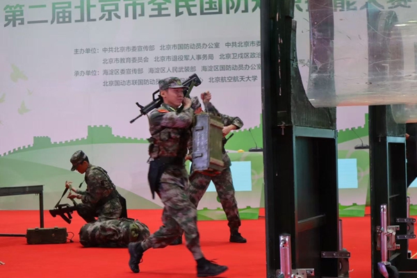 “第二届北京市全民国防知识技能大赛”由中共北京市委宣传部、北京市国防动员办公室、中共北京市委教育工委、北京市教育委员会、北京市退役军人事务局、北京卫戍区政治工作部共同举办,共吸引全市16个区和42所在京高校组队参赛。大赛决赛分为技能和知识两部分。技能决赛包含地桩网下侧身匍匐运送物资、小组协同通过模拟管道、战场救护等5项竞技内容。知识答题部分包含必答题、速答题、抢答题三个环节。进入决赛的12支代表队按社会组和高校组两个组别分别计分排名。