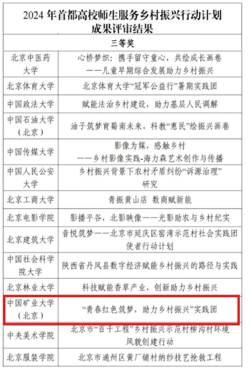 我校1支团队获评2024年首都高校师生服务乡村振兴行动计划成果三等奖