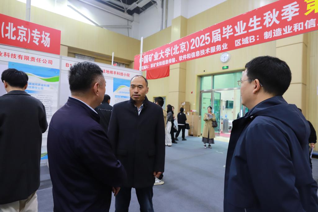 乔红兵先后与伊犁师范大学、滨州市人力资源和社会保障局、中国黄金集团有限公司等多家用人单位招聘负责人进行交流,了解用人单位招聘需求,听取用人单位对学校人才培养、实习就业、科学研究等方面工作的意见与建议,希望用人单位不断加大来校人才招聘力度,进一步深化校企合作。同时与应聘毕业生进行亲切交流,了解毕业生就业意向,鼓励广大毕业生抓住求职黄金机会,积极应聘求职,投身国家建设。随后,他来到“简历诊断”“考研指导”“AI面试”展位前驻足,细致询问了为毕业生提供的个性化职业规划、求职技巧培训等就业服务情况,表示要不断完善就业指导服务体系,加强个性化指导与精准推介,为学生成长成才、就业升学奠定坚实基础。