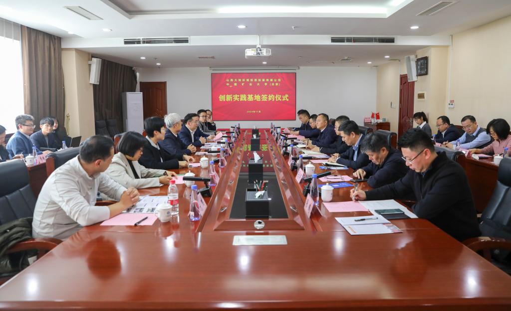 本网讯 11月3日下午,校长刘波带队赴山西大地环境投资控股有限公司走访交流,举行“科技矿场”签约暨挂牌仪式,大地控股党委副书记、副董事长、总经理侯利强等集团领导出席会议。