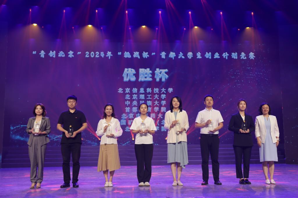 在今年的“青创北京”2024年“挑战杯”首都大学生创业计划竞赛中,学校获得金奖7项、银奖7项、铜奖13项,总成绩位列北京高校第16名,学校连续四年捧得首都“挑战杯”竞赛“优胜杯”。