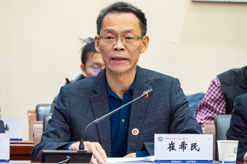 崔希民致欢迎辞,他代表学校对专家组的莅临指导表示热烈欢迎和由衷的感谢,并简要介绍了学校的办学历史和学科发展概况。崔校长表示学校高度重视学位授权点评估工作,希望通过此次评估,专家组能够为物理学科建设“把脉问诊”,提供宝贵建议,助力物理学科实现更高质量的发展。崔校长指出,物理学科在国家科技发展中承担着重要使命,此次评估不仅是学位授权点对自我提升的检验,更是推动我校在该领域不断进步的重要契机。学校将以此次评估为契机,进一步完善人才培养体系,为社会培养更多具备创新精神的高素质物理人才,为国家科技进步和经济发展贡献力量。