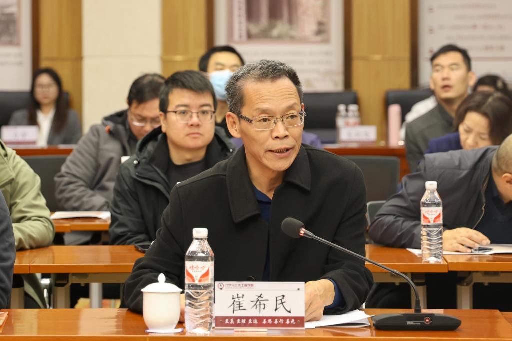 崔希民详细介绍了学校研究生学位点的总体情况以及力学与土木工程学院三个学位点的发展历史和基本情况。崔校长指出,本次合格评估不仅是对学校学位授权点建设水平和人才培养质量的全面检查,也是对师资队伍、学科方向、人才培养质量和特色科学研究、社会服务、学术交流、条件建设和制度保障等的综合评价。希望通过本次评审能够帮助学校,特别是土木工程、力学、城乡规划的三个学科,更加清晰认识自身的不足,明确下一步的重点和发展方向,为三个学位授权点的长远发展和下一轮学科评估奠定坚实的基础。最后,崔希民再次感谢各位专家的参与和支持,希望以此次评审会为契机,未来建立更加紧密的合作关系,提升国家工程建设水平。