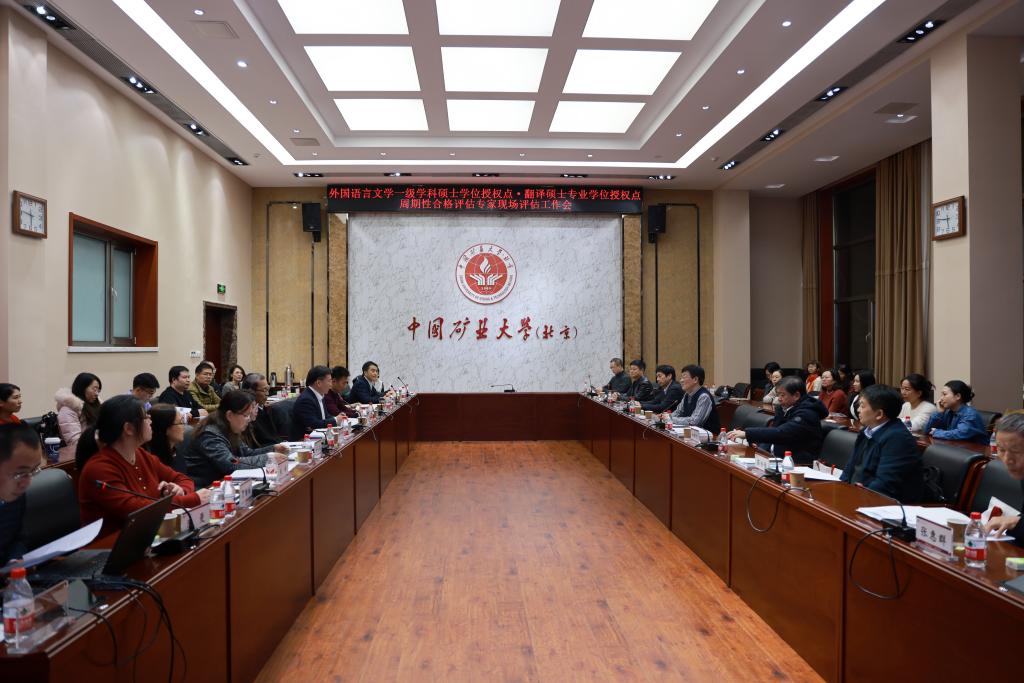 本网讯 11月26日下午,中国矿业大学(北京)外国语言文学一级学科硕士学位授权点和翻译硕士专业学位授权点合格评估专家评审会在1号办公楼200会议室召开。