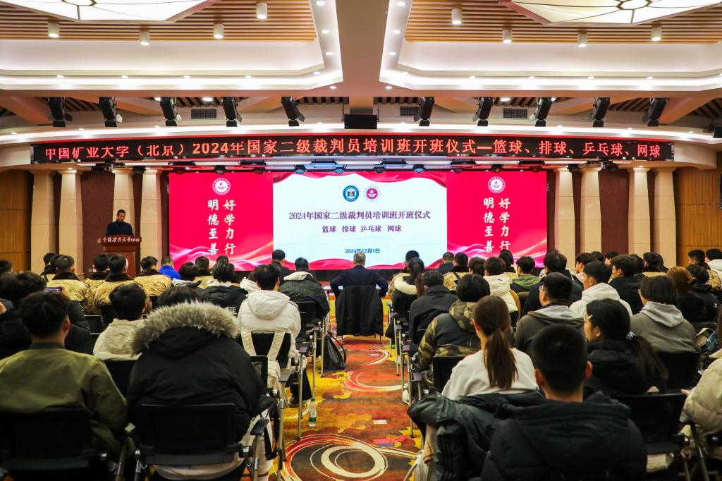 本网讯 受中国煤矿体育协会和全国煤炭系统高校体育协会的委托,我校篮球、排球、乒乓球、网球国家二级裁判员培训班(第四期)于12月1日上午在福中苑报告厅举行。校党委副书记安宇、中国煤矿体育协会秘书长孟成出席并讲话,继续教育学院院长杨向东、体育教研部主任杨三军、副主任王耀东、曾丽君,以及8名培训讲师和173名学员参加活动,开班仪式由杨三军主持。