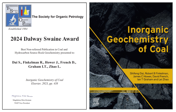 国际Dal Swaine奖是为纪念著名的澳大利亚能源地质学家Dal Swaine而设立的,Dal Swaine教授在煤的地球化学和环境地球化学领域做出了杰出的贡献,该奖以其名字命名,以表彰在煤和烃源岩地球化学及矿物学领域做出重要贡献的论文或专著。通常情况下,国际Dal Swaine奖每年只奖励一项研究成果。代世峰教授带领的国际研究团队,包括美国德克萨斯大学达拉斯分校Robert B. Finkelman教授、肯塔基大学James C. Hower教授、澳大利亚新南威尔士大学David French教授、Ian Graham博士、我校赵蕾教授共同编著的《Inorganic Geochemistry of Coal》(Elsevier,2023)获得2024年度Dal Swaine奖。