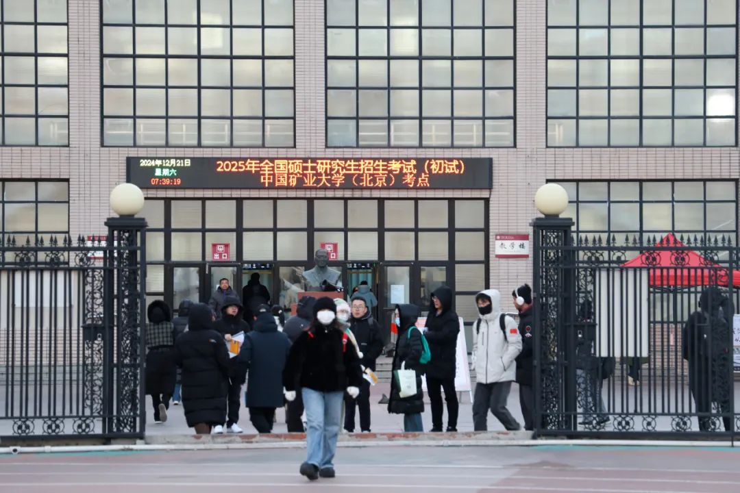 本网讯 12月21日至22日,2025年全国硕士研究生招生考试中国矿业大学(北京)考点工作完成。全国共7386名考生报考我校硕士研究生,涉及到全国531个报考点,其中在中国矿业大学(北京)考点参加考试的考生人数达2373人,我校考点共设立82个标准化考场和1个建筑绘画考场,启用备用考场1个。300余名监考教师、考务人员、安保人员、后勤保障人员及志愿者服务我考点。