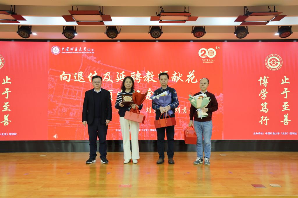 大会首先进行了教师荣休仪式,副校长王凯向2024年荣休教师李溪以及延聘教师李英骏、刘宗光、刘青平颁发纪念章和纪念品,青年教师代表向四位老师献花。会上对学院2024年度获省部级及校级各类荣誉的团队和老师进行表彰。