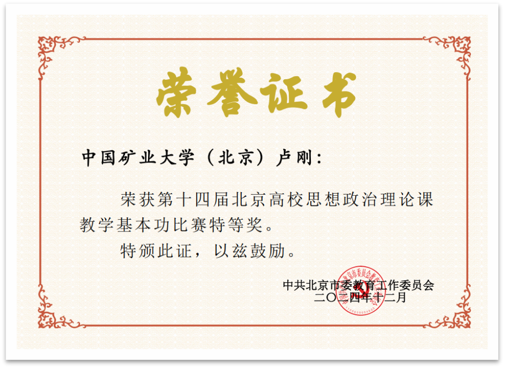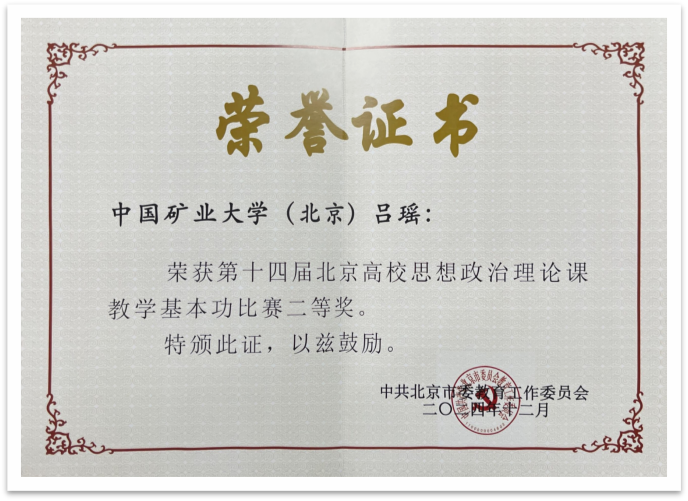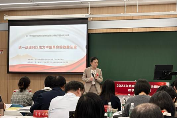 本网讯 近日,由北京市委教育工委主办的2024年北京高校思想政治理论课教学基本功比赛落下帷幕。马克思主义学院选派三名教师参赛并全部获奖,其中卢刚老师荣获特等奖,刘照峰老师、吕瑶老师荣获二等奖。我校思政课教师已经连续两年在本项赛事中斩获特等奖,本次获奖人数又创历史性新高。