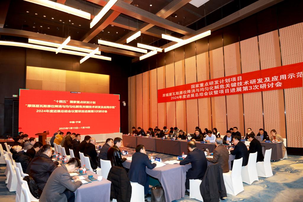 本网讯 1月16日,由中国矿业大学(北京)作为牵头承担单位,王凯教授作为项目负责人承担的“十四五”国家重点研发计划“厚煤层瓦斯原位降消与均匀化解危关键技术研发及应用示范”项目(编号:2023YFC3009000)2024年度进展总结会议在宁波召开。项目技术总顾问袁亮院士,项目跟踪专家、中国煤炭科工集团有限公司刘见中研究员和中国科学院武汉岩土力学研究所李小春研究员,项目负责人、中国矿业大学(北京)副校长王凯教授,各课题负责人及研究骨干等60余人出席了会议。会议由课题五承担单位重庆大学承办,袁亮院士主持会议。