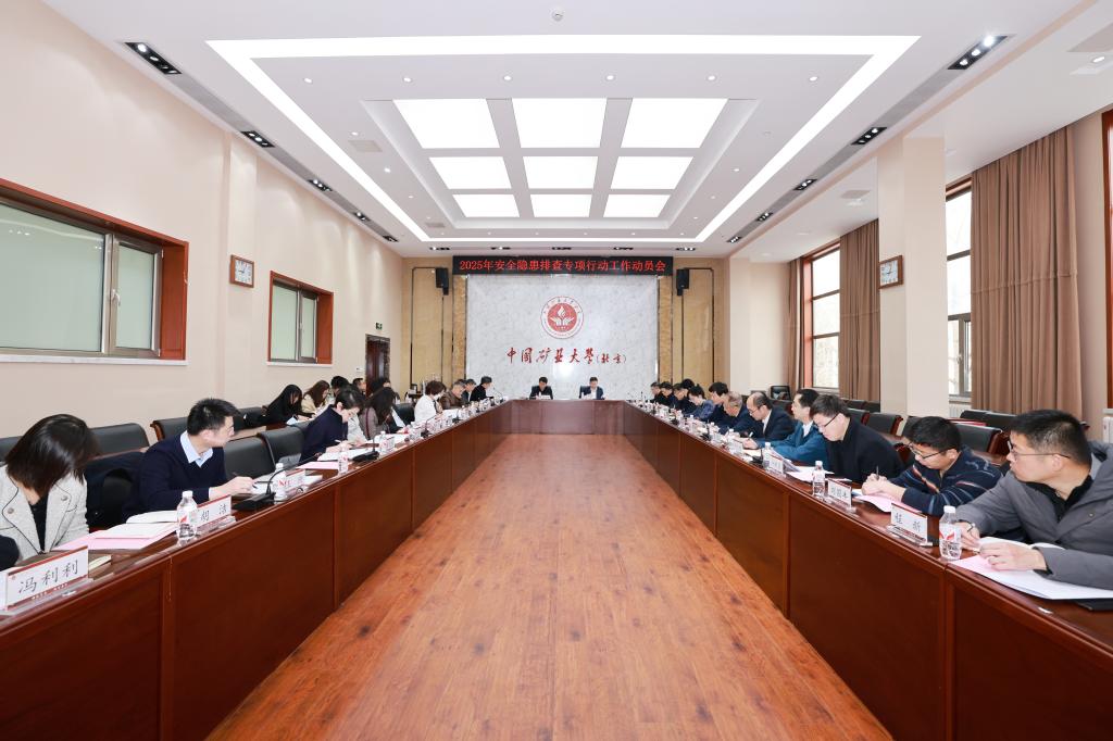 本网讯 按照教育部和北京市委教育工委关于做好2025年春季开学安全风险隐患排查工作的部署要求,为进一步加强校园安全检查与整改,切实维护师生和校园安全,3月10日上午,学校召开2025年安全隐患排查专项行动工作动员会。校党委书记韩尚峰、校长刘波出席会议并讲话,副校长谭凯主持会议。安全隐患排查专项行动工作组组长、副组长及联络员参加会议。