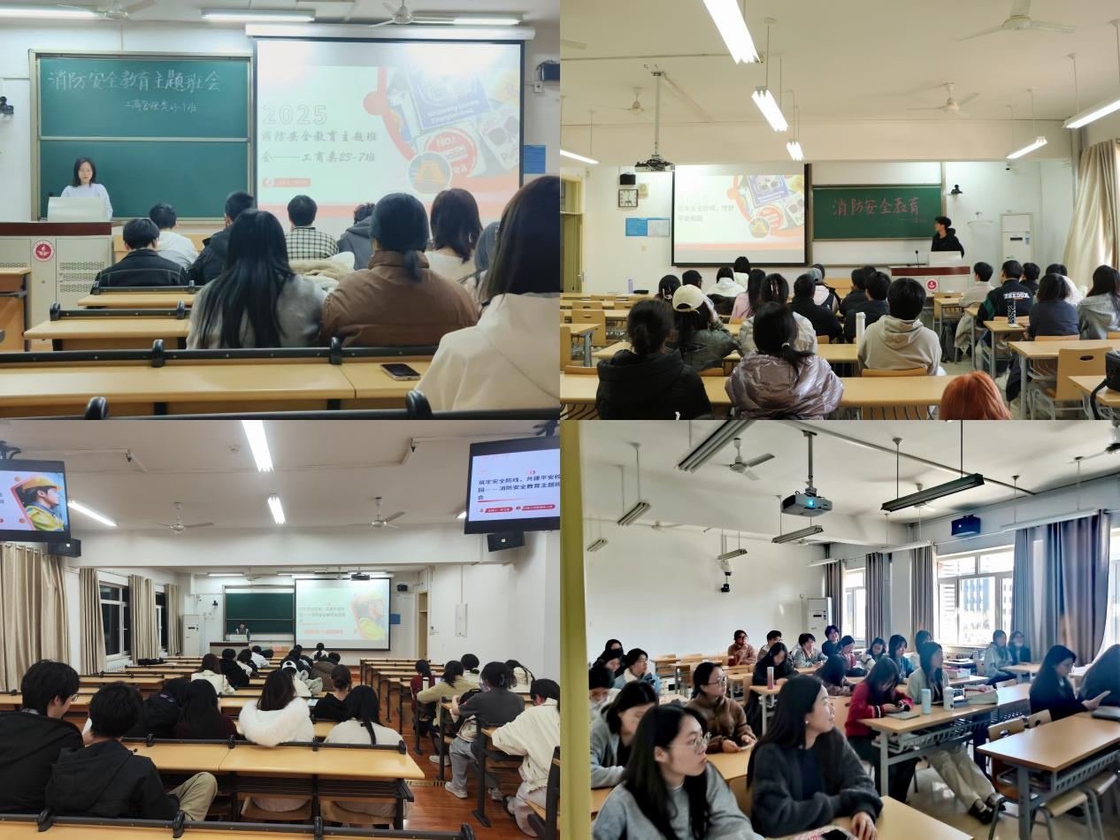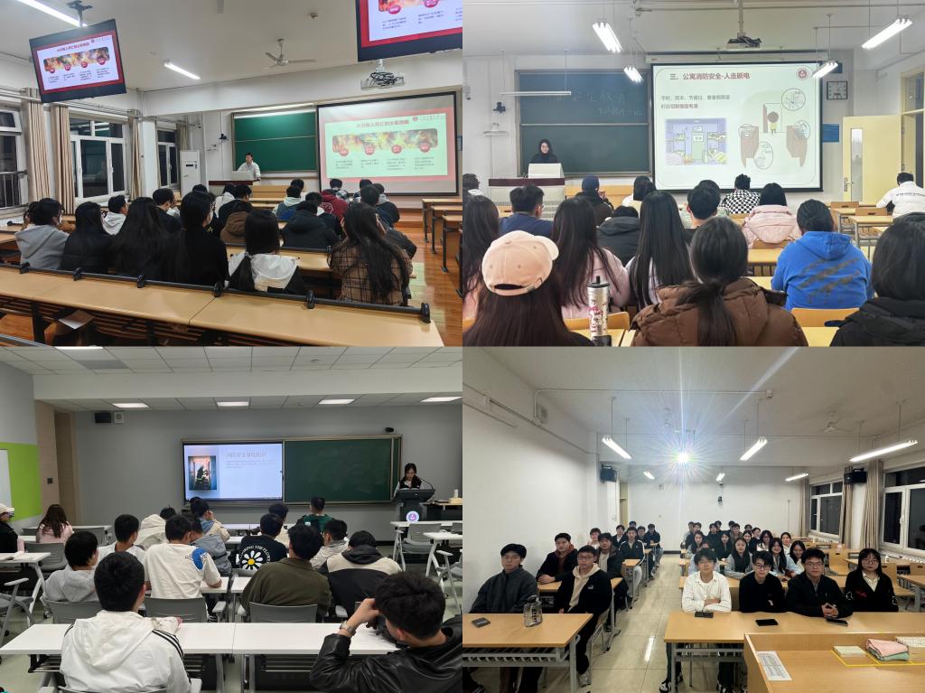 明德书院组织全院学生开展“筑牢消防安全防线,创建文明校园”系列主题班会活动。理论教育上,通过重点学习《学生手册》中公寓管理、控烟条例,违纪处分相关内容及火灾成因、分类及预防措施,引导学生掌握消防知识;案例警示中,播放高校火灾事故视频,以真实案例引发反思;实践操作时,通过现场演示灭火器操作步骤、模拟火场逃生演练等,强化技能训练,提升面对火情的自救能力。