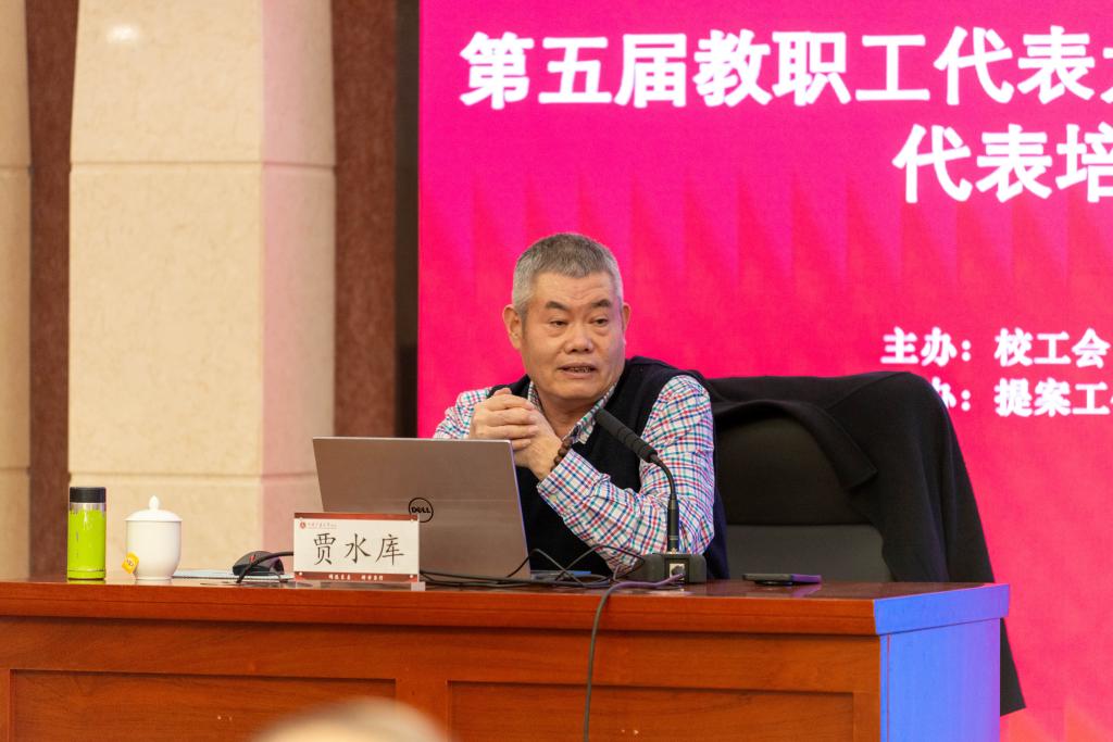 贾水库以“高等学校教职工代表履职及提案工作”为题,结合丰富的工作经验和具体的案例分析,详细解读了高等学校教职工代表大会制度,让大家对教代会的历史沿革、职权变化、地位、作用、工作流程及教代会代表的权利与义务有了清晰的认识,并从“什么是提案”“为什么要写提案”“怎么写提案”“提案工作中注意的问题”等方面,深入浅出地讲解了如何做好教职工代表大会的提案工作。报告内容既有理论的高度,又有实践的深度,是一堂生动高质量的培训课程。