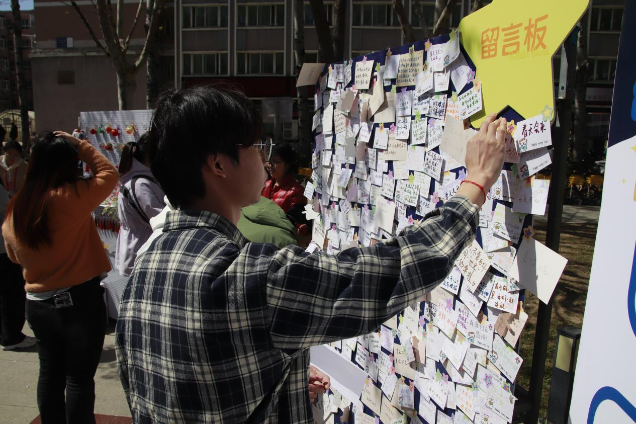本次活动通过展出孤独症儿童及青少年创作的两百余件艺术作品,色彩斑斓的画作、精巧细致的手工艺品,让学生们看见了“星星的孩子”富有创造力的艺术世界,感受特殊群体面对生命的坚韧。活动现场热闹非凡,精心设置的“星光市集,以爱换光”环节,学生们通过书写暖心祝福卡片,换取孤独症儿童的手工作品,“萤火予星光”形成礼物与情感之间的温暖流动,体现了当代学生“助人亦自助”的心灵共济治愈之道。“星光科普,有奖问答”环节中人群络绎不绝,同学们在趣味互动中学习孤独症的症状、成因、治疗方法等知识,现场专业心理咨询师耐心答疑解惑,将晦涩的专业知识转化为通俗易懂的内容,帮助学生们搭建起理解与包容的桥梁。不同年龄段的学生在活动中相互交流、共同学习,让关爱特殊群体的意识扎根于校园文化之中,提高学生对社会责任的思考与担当。