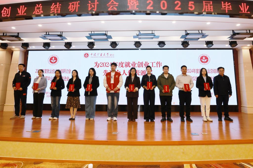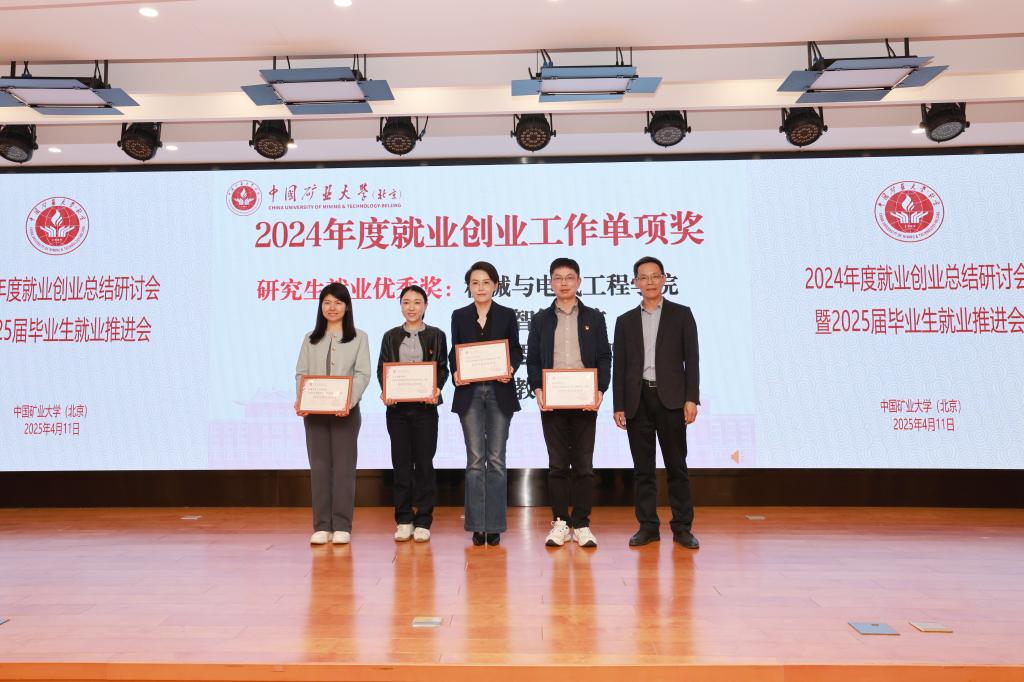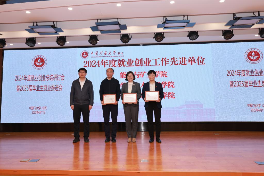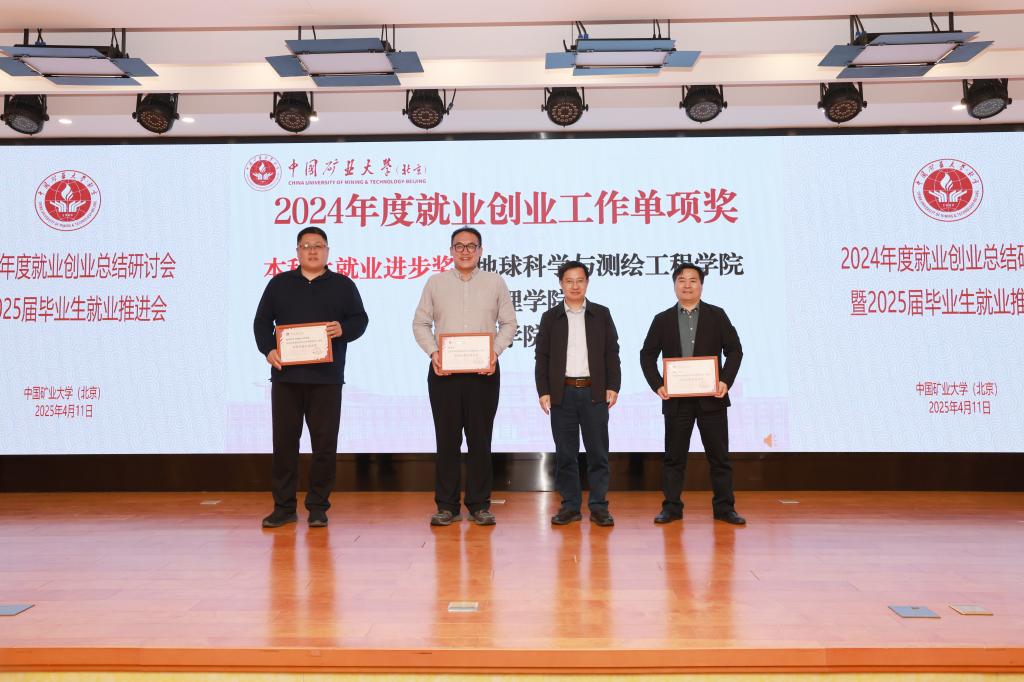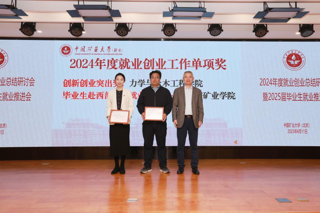 副校长崔希民为获得2024年度研究生就业优秀奖的学院颁发奖牌