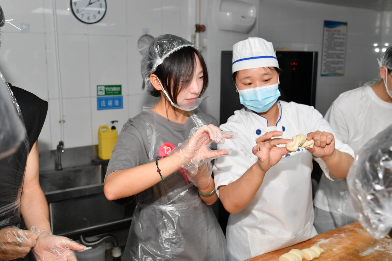 活动当天,为保障活动安全有序,餐饮服务中心工作人员首先对参与学生进行岗前培训,详细介绍了食品安全知识以及后厨各类设备器具,并安排食堂师傅为学生答疑解惑,确保学生在实践过程中操作规范、安全。