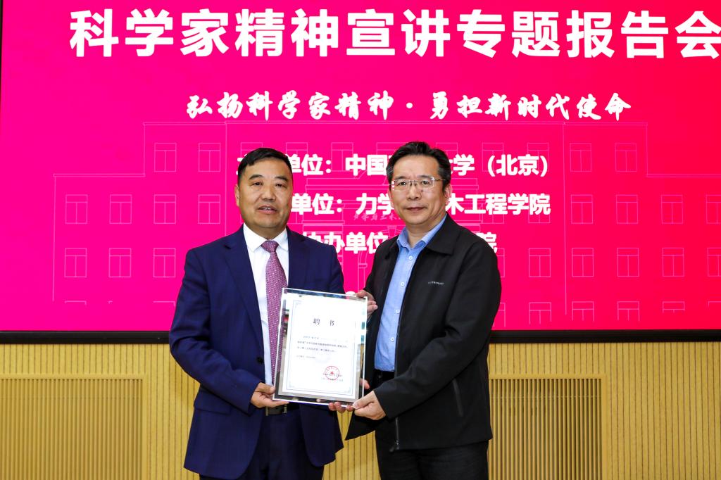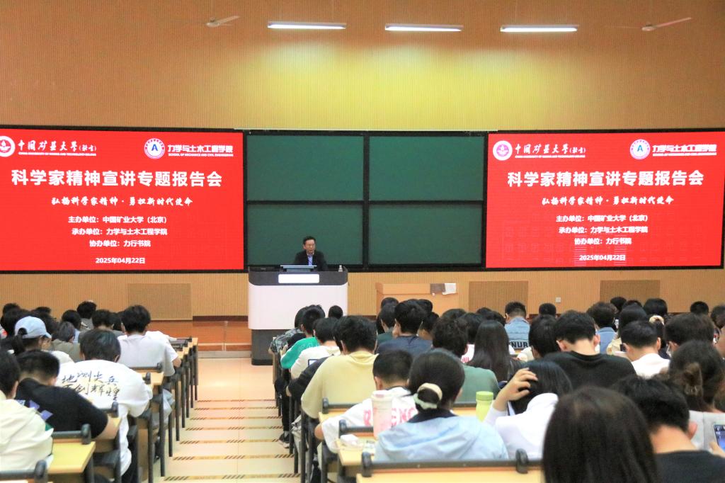 本网讯 为贯彻落实党的二十届三中全会,全国科技大会和全国教育大会精神,进一步弘扬科学家精神,激励我校师生志存高远,爱国奉献、矢志创新。4月22日,学校在沙河校区举办了科学家精神宣讲专题报告会。中国石油学会会士、原中国石油学会副理事长兼秘书长徐凤银教授应邀做客报告会,以“淬炼初心,守望梦想,奋斗中的创新与成长”为主题,为中国矿业大学(北京)师生作专题报告。校长刘波出席报告会并致辞,力学与土木工程学院党委书记李帅主持报告会。