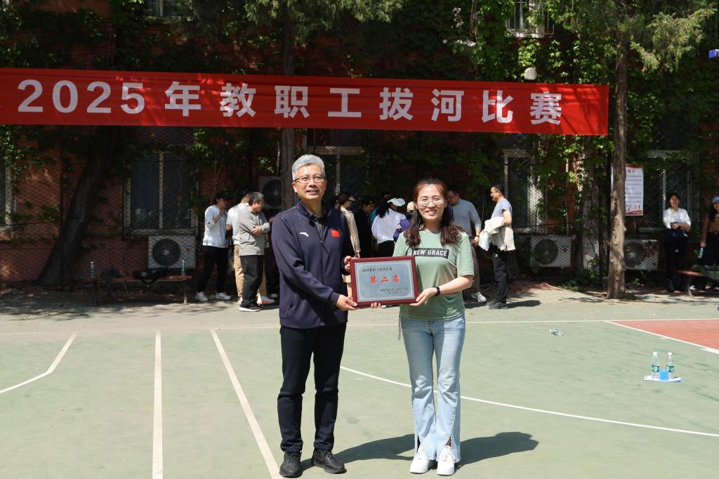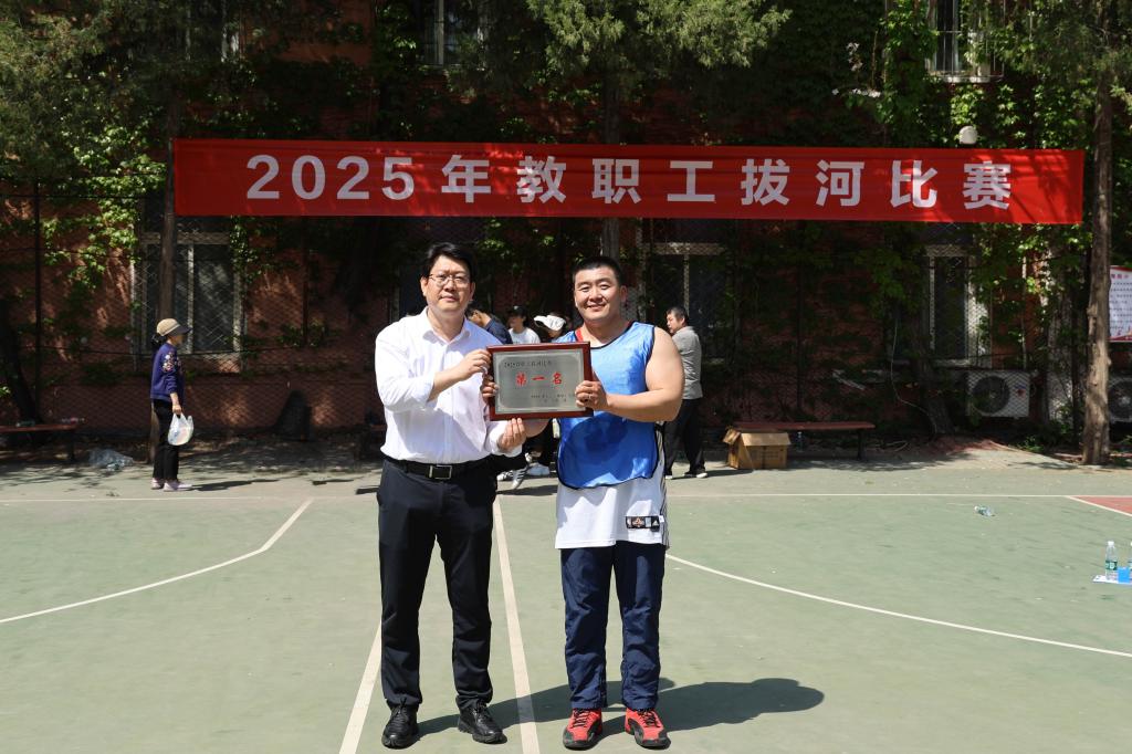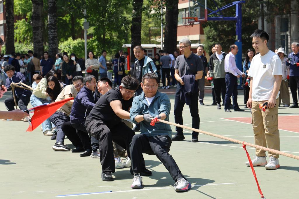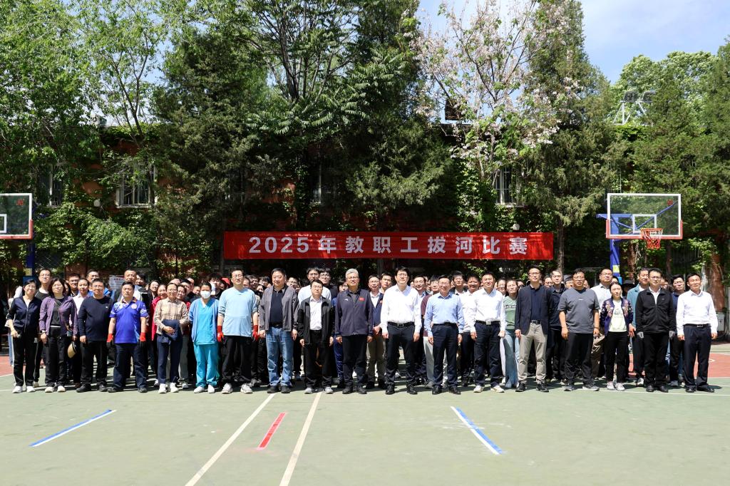 本网讯 为深入学习贯彻习近平新时代中国特色社会主义思想,扎实开展深入贯彻中央八项规定精神学习教育,进一步丰富教职工校园文化生活,增强学校凝聚力,4月29日下午,中国矿业大学(北京)2025年教职工拔河比赛在篮球场举行。本次活动以“拔河气如虹 强国建新功”为主题,由校工会主办,来自17个分工会的16支队伍、200余名教职工参赛。校党委书记韩尚峰,校长、党委副书记刘波,校党委副书记安宇出席活动,为参赛队伍加油助威。