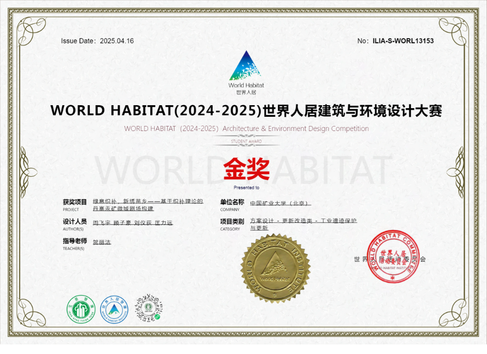 本网讯 近日,WORLD HABITAT(2024-2025)世界人居建筑与环境设计大赛评审结果揭晓。中国矿业大学(北京)力学与土木工程学院建筑学专业2021级本科生周飞宇、顾子豪、刘仪荻、匡力远在贺丽洁老师的指导下,凭借作品《绿意织补,新锈苗乡——基于织补理论的丹寨汞矿微城剧场构建》从全球563件参赛作品中脱颖而出,荣获改造更新类金奖(本次大赛在该类别评选出2项金奖、4项银奖、6项铜奖、3项优秀奖)。