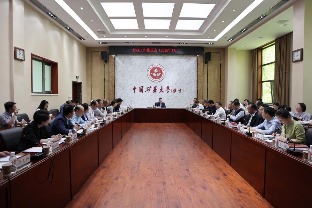 本网讯 4月29日下午,学校在办公一号楼200会议室召开4月行政工作推进会。校长刘波,副校长崔希民、谭凯、汪文生、王凯,校长助理乔红兵出席会议,行政部门、教辅单位、教学科研单位负责人参加会议。会议由崔希民主持。