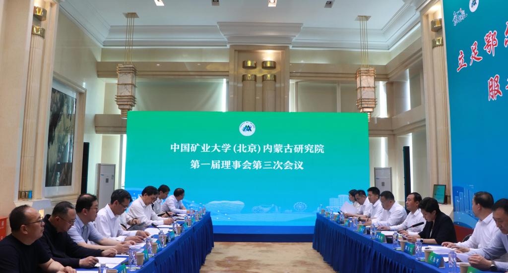 本网讯 5月13日,学校内蒙古研究院第一届理事会第三次会议在北京召开。鄂尔多斯市市委副书记、市长于海宇,校长刘波出席会议并讲话。中国工程院院士、内蒙古研究院院长武强出席会议,副市长张秀玲主持会议。
