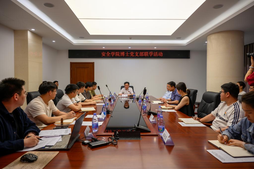 本网讯 5月19日,学校副校长王凯出席应急管理与安全工程学院博士第五党支部与博士24-2党支部举办的“新时代青年责任担当与科技创新——在中国式现代化建设中勇立潮头”联学活动,与支部全体党员亲切交流。
