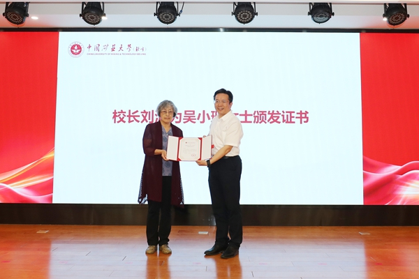 为原北京矿业学院院长吴子牧女儿吴小珊女士颁发证书