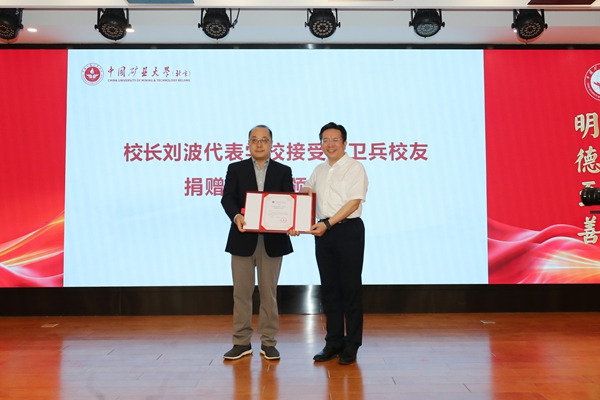 刘波在致辞中感谢向学校捐赠珍贵史料实物和资金的捐赠者。他表示,校史是学校精神文化的源泉,是凝聚师生校友的精神纽带,史料实物承载着学校百十余年办学历程中沉淀的集体记忆,不仅是学校发展的历史注脚,更是新时代矿大人续写辉煌的底气与坐标。捐赠仪式传递的不仅是实物本身,更是对学校历史的守护;延续的不仅是历史的记忆,更是对高等教育使命的传承。学校将以史为镜,从百十余校史中汲取精神养分,以史为灯,在传承创新中照亮前行之路。要筑牢文化根基,培育身份认同,深耕校史研究,弘扬矿大精神,讲好矿大故事。要创新文化育人,厚植家国情怀,以“校史+”模式推动精神文化传承,开辟多样化校史宣传渠道。要坚持守正创新,积极开拓进取,从校史中汲取发展力量,将历史智慧转化为发展动力。要持续凝心聚力,共谋事业发展,深化校友联络机制,完善校友参与机制,与校友携手书写学校高质量发展的新篇章。