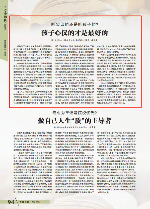 【北京考试报】听父母的还是听孩子的?孩子心仪的才是最好的