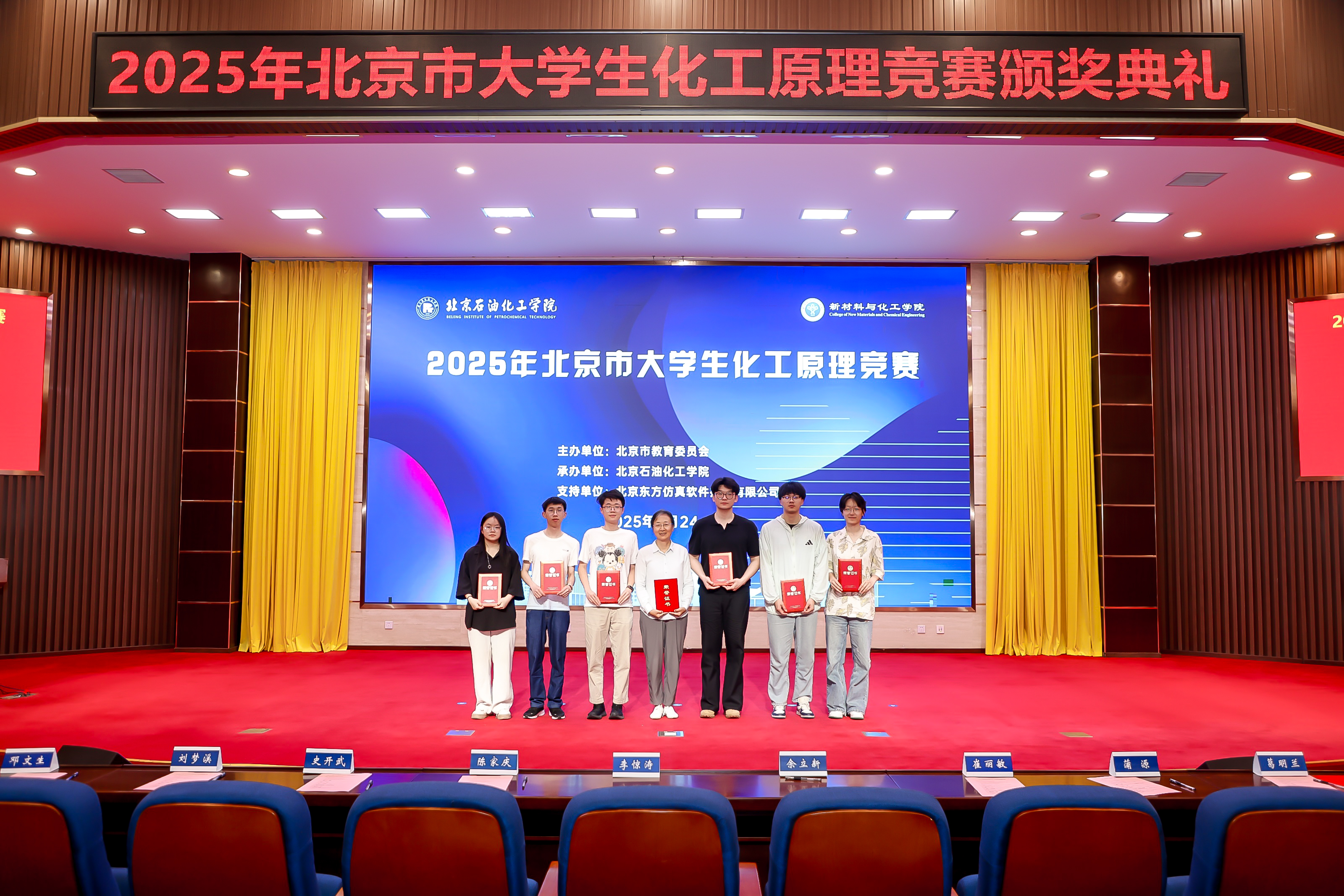 本网讯 在近日落幕的2025年北京市大学生化工原理竞赛中,我校化学与环境工程学院代表队以卓越表现再次获得团体一等奖,参赛的6名学子全部斩获奖项,其中朱嘉丰、廖文韬、张岳、孙登宇荣获个人一等奖,何蕙恩、朱梦媛荣获个人二等奖。这是我校连续第七次摘得该项赛事团体一等奖,在首都高校化工人才培养赛道继续保持佳绩。