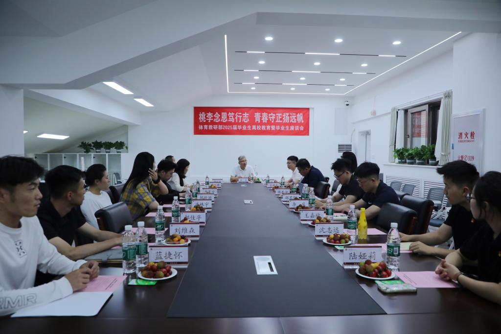 本网讯 近日,体育教研部举行以“桃李念恩笃行志 青春守正扬远帆”为主题的2025届毕业生离校教育暨座谈会。校党委副书记安宇出席会议并为毕业生送上寄语,体育教研部领导班子和导师代表、2025届毕业生代表参加会议。