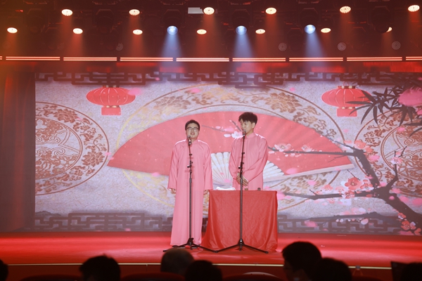 相声《大学回忆录》是学校践行“以文化人、以美育人”理念的生动体现,节目以校园生活为蓝本,盘点校园趣事、宿舍点滴等片段,用艺术化表达复刻大学时光,现场笑声与掌声交织。