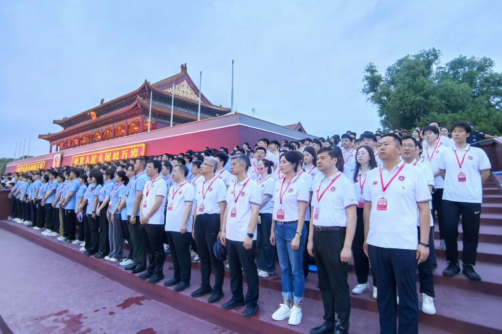 本网讯 7月1日清晨,随着天安门城楼吹响升旗号角,升旗仪式正式开始。在这个具有特殊历史意义的日子里,学校90多名师生在天安门广场共同见证着五星红旗冉冉升起的庄严时刻。他们的脸庞写满了激动和自豪,为党的104周岁生日送上最真挚的祝福,更将红色基因融入血脉,将爱国情怀化为行动,在天安门广场上了一场生动而深刻的思政课。校党委副书记安宇出席活动。党委宣传部、学生工作处、党委武装部负责人,力行书院的师生代表,志愿者参加了此次活动。