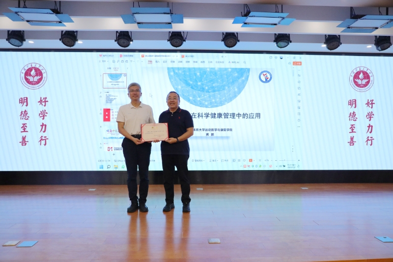 作为2024年巴黎奥运会曲棍球银牌团队核心成员,李红以《体育精神与科学锻炼:冠军之路的双翼》为题,深情回顾运动生涯与夺冠历程,揭秘中国女曲时隔16年再夺奥运银牌的科学训练体系。她以“冰山雪莲精神”诠释国家使命、永不言弃的拼搏意志与团队协作的精神内核,让师生深刻理解竞技体育背后的精神力量与科技支撑。北京冬奥会、国家乒乓球队等金牌队伍的“健康守护者”黄鹏教授带来《运动康复在科学健康管理中的应用》专题分享,围绕“久坐人群高效运动康复方案”“科学训练与伤病预防平衡策略”“健康管理中的科技应用”等内容,结合国家队实战案例与运动医学理论,为师生定制实用的运动康复与科学锻炼方案。