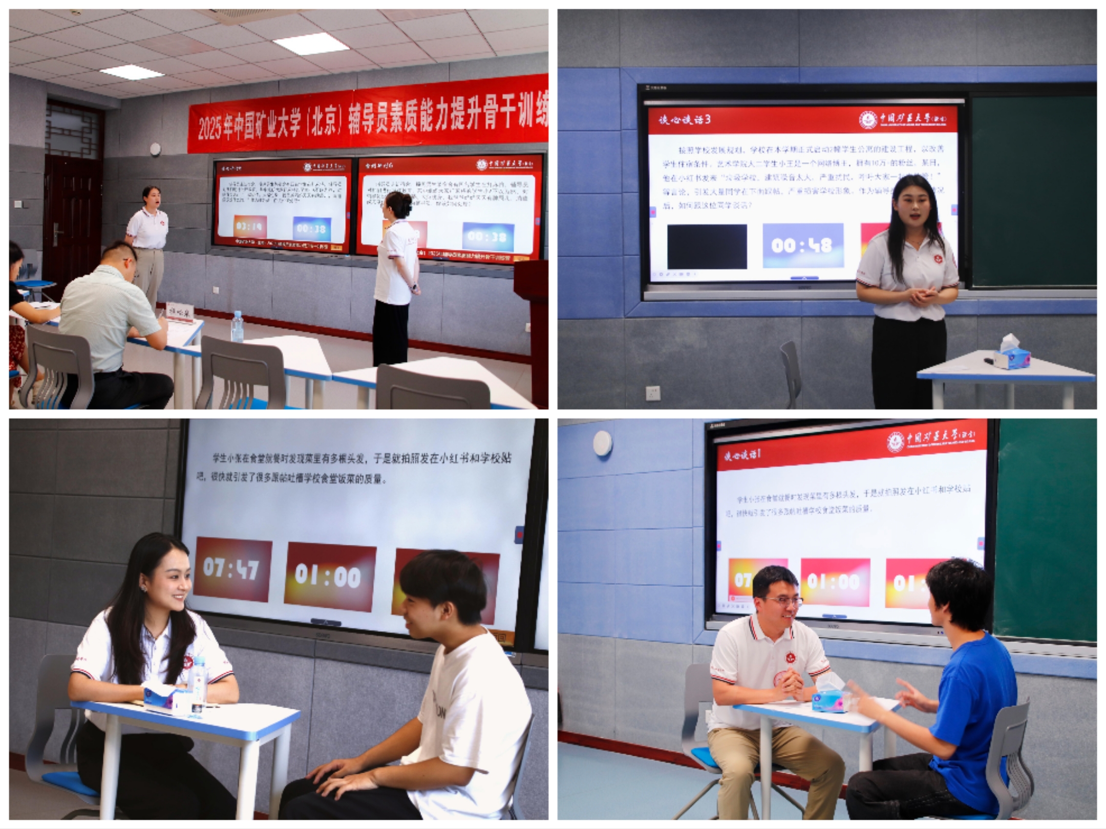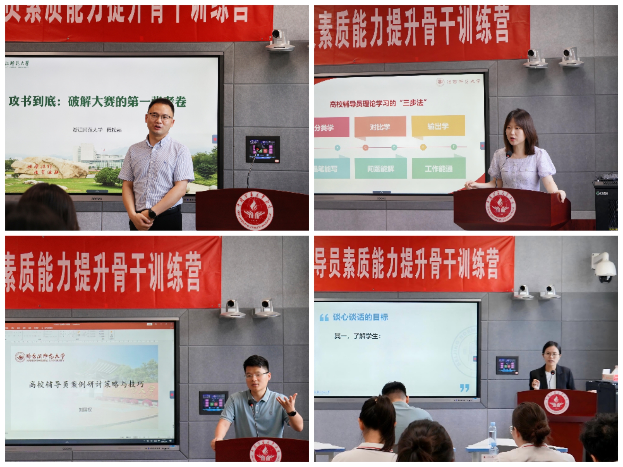 本届训练营邀请全国辅导员素质能力大赛一等奖获得者、大赛指导专家刘国权、安利利、程松泉、胡园慧担任导师,采用“学训赛”一体化模式,理论与实践并重,聚焦基础知识、案例研讨、谈心谈话三大核心展开。经校内基础知识测试选拔出的22名骨干辅导员,在为期两天的集中培训中进行了理论学习与模拟演练。通过实战选拔,最终12名辅导员晋级校级辅导员素质能力大赛决赛。