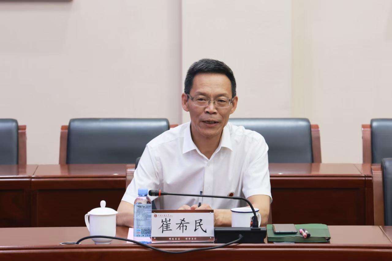 崔希民代表学校对赵明波一行到访表示热烈欢迎,并对天柱县长期以来给予学校的关注与支持表示衷心感谢。他表示,天柱县拥有独特的资源禀赋和广阔的发展前景,学校将充分发挥资源勘探开发、智能矿山、清洁低碳技术等领域的学科、科研、人才优势,参与和支持天柱县特色资源绿色开发与产业转型升级,通过双方合作共同探索资源富集地区高质量发展新路径。