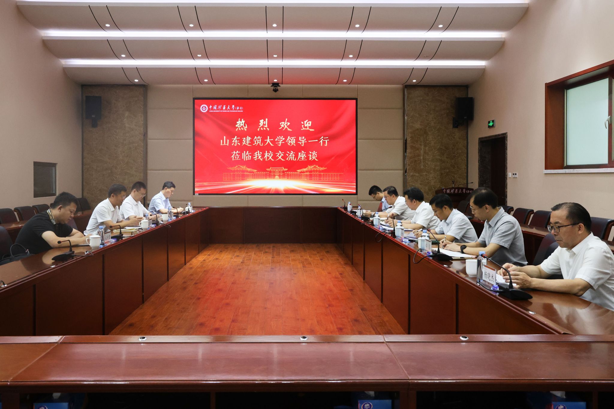 本网讯 8月16日上午,山东建筑大学党委副书记、校长于德湖一行来校交流座谈。校长、党委副书记刘波,山东建筑大学党委常委、副校长王清标等出席座谈会,校党委常委、副校长汪文生主持会议。