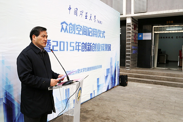 12月22日上午,我校“众创空间”启动仪式暨2015年创新创业成果展在学十楼西侧举行。校党委书记徐孝民,校党委副书记朱书全出席了仪式并为“众创空间”揭牌。揭牌仪式由学生工作处处长安宇主持,学校相关职能部门负责人、各学院学生工作负责人、辅导员代表和学生创业团队代表参加了揭牌仪式。