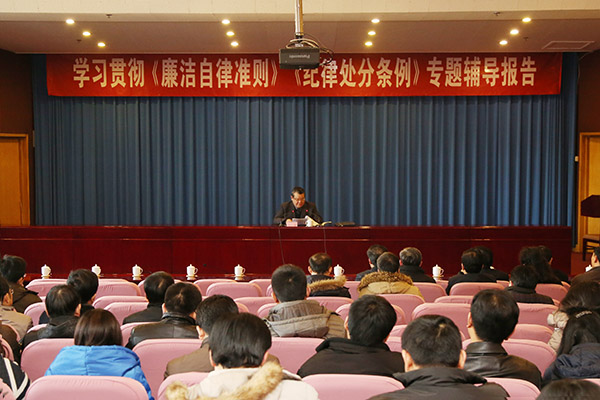 学校举行学习贯彻《廉洁自律准则》和《纪律处分条例》专题报告会