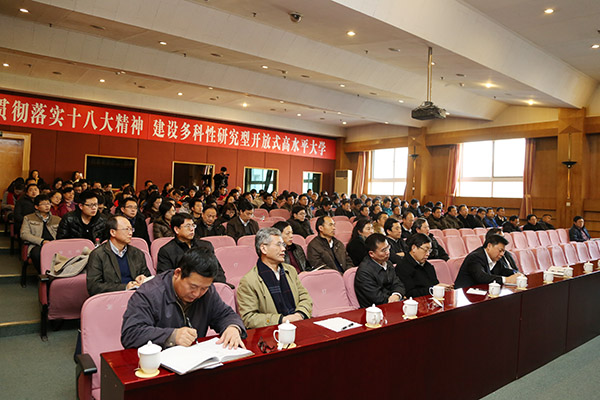 12月17日下午,学校在交流中心报告厅举行学习贯彻《廉洁自律准则》和《律处分条例》专题报告会。中国政治学会副会长、中国科学社会主义学会副会长包心鉴教授应邀为我校师生作专题报告。校党委书记徐孝民、校长杨仁树,副校长范迅、王忠强,校党委副书记朱书全,校党委副书记、纪委书记张志坤,校长助理范中启出席会议,学校师生员工400余人聆听了报告。张志坤主持报告会。