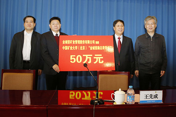 金诚信矿业管理股份有限公司是一家集有色金属矿山、黑色金属矿山和化工矿山工程建设、采矿运营管理、矿山设计与技术研发等业务为一体的专业性管理服务企业。公司自2003年起,陆续在北京科技大学、中南大学、东北大学、昆明理工大学、重庆大学、江西理工大学和西安建筑科技大学等院校设立各类奖助学金,使得3300多名品学兼优及家庭经济困难学生先后获得资助,顺利完成学业。公司也以捐资共建实验室、向教育发展基金会捐资、捐资设立“金诚信博爱小学”等方式,不遗余力地支持和关心着中国教育事业的发展。金诚信矿业公司拟于2015年到2020年向我校捐赠资金共50万元,设立“金诚信励志奖学金”,用于资助我校品学兼优的家庭经济困难学生。
