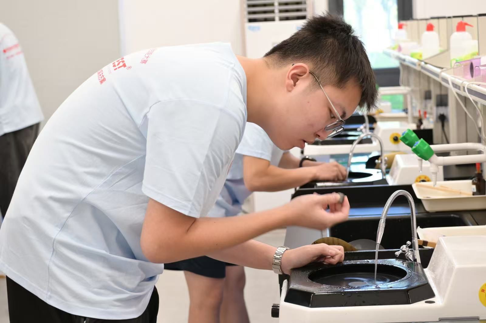 大赛第一赛道 (徕卡杯第十四届全国大学生金相技能大赛)考察选手对工业纯铁、20钢两种试样的磨制、抛光、腐蚀和显微组织观察的实验操作技能,每一个环节都考验着选手的细致与精准。学校王泽月、张晋华、张士博、卢思涵、冯子坤五位同学获得个人二等奖一项,个人三等奖四项。