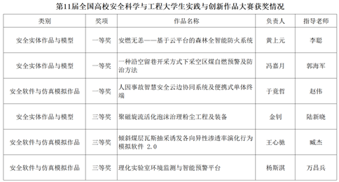 学校师生在全国高校安全科学与工程大学生实践与创新作品大赛中获3项一等奖